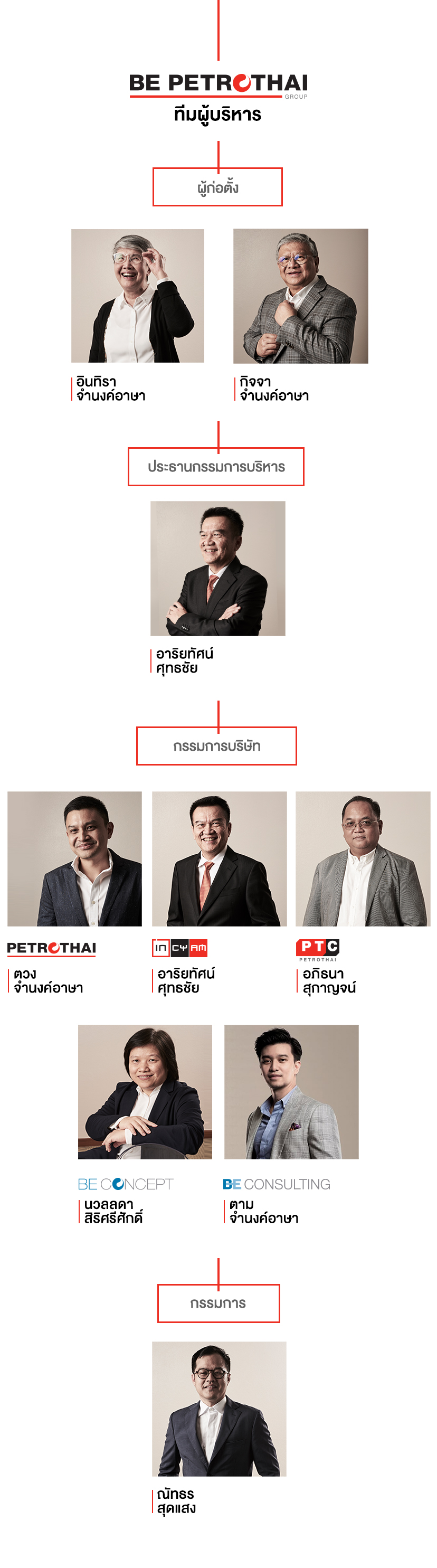 ทีมผู้บริหารของกลุ่มบริษัท บี ปิโตรไทย